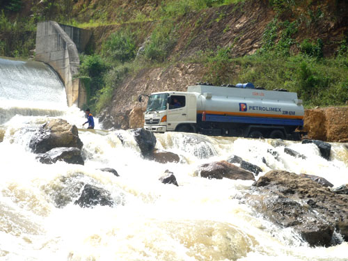 Chiếc xe lao xuống dòng nước suối trong sự lo lắng của mọi người. Lúc đó, chúng tôi tin rằng, xe đi chậm nhưng nhịp tim của nhiều thành viên trong đoàn đang đập nhanh trong lồng ngực. Nhìn chiếc xe, cảm tưởng như dòng nước hung dữ có thể cuốn phăng lúc nào. Chớp lấy thời cơ chúng tôi bấm máy ảnh liên hồi để có những bức ảnh đẹp. Sau khoảng 15 phút vừa đi vừa dò đường, chiếc xitec đã cập bờ bên kia trong những tiếng thở phào nhẹ nhõm. Anh Toàn dừng lại lắp quạt trả vào động cơ, cười nói: “Lúc vượt, xe mà vấp phải hòn đá hộc, sẽ bị lộn nhào. Lúc đó, hậu quả khó lường”.