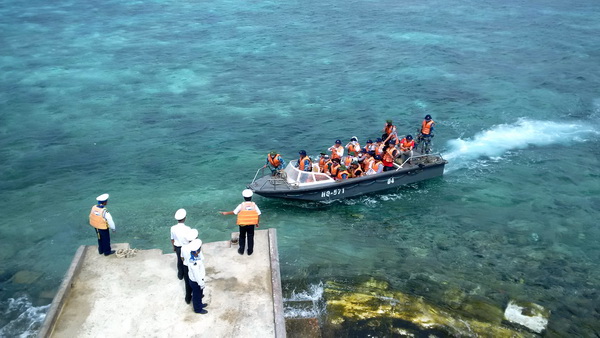 Anh em trên đảo ra tận cầu tầu đón đoàn. Nét mặt ai cũng rắn rỏi, tự tin, vui mừng.