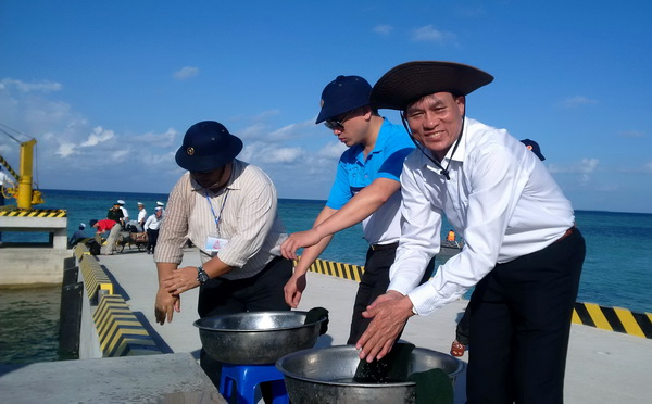 Bài Quốc ca Việt Nam được tất cả mọi người, quân và dân cùng hát, hòa trong tiếng sóng biển làm vang động không gian rộng lớn của đảo.
