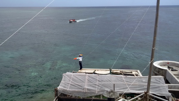 Nước biển xanh, trong vắt. Giờ là thời điểm gió đông bắc đã chấm dứt, gió tây nam chưa hình thành nên biển hiền hoà, êm đềm như bàn tay người Mẹ nâng niu đứa con thơ yêu quý của mình. Tầu chúng tôi vẫn tiếp tục hành trình thẳng tiến đến với Trường Sa.