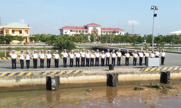 Thấy các sĩ quan, chiến sĩ Quân chủng Hải quân Nhân dân Việt Nam hàng ngũ chỉnh tề dưới Cờ Tổ quốc, anh em Đoàn công tác số 9 chúng tôi cũng đứng vào xếp hàng.
